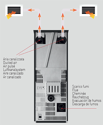 Pelletikamin Giusy on ideaalne suurte või erinevate ruumide kütmiseks, kuna soojust juhitakse eest ühe ja tagant kahe eraldiseisva ventilaatoriga, et jaotada soojust võrdselt läbi mitme ruumi või vajadusel kontsentreerida 100% soojust ühte ruumi.